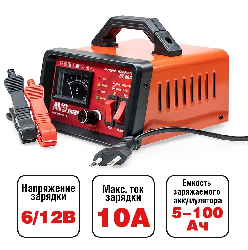 Зарядное устройство для автомобильного аккумулятора AVS BT-6025 (10A) 6/12V