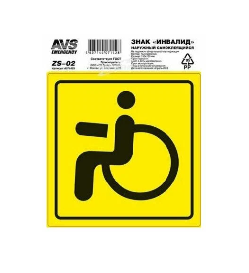 Знак "Инвалид" ГОСТ наруж.самоклеящ. AVS ZS-02 (150x150) инд.упак.1 шт.