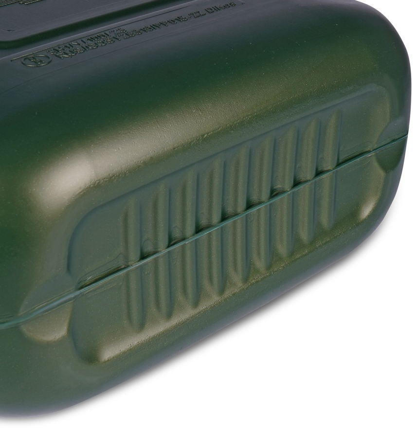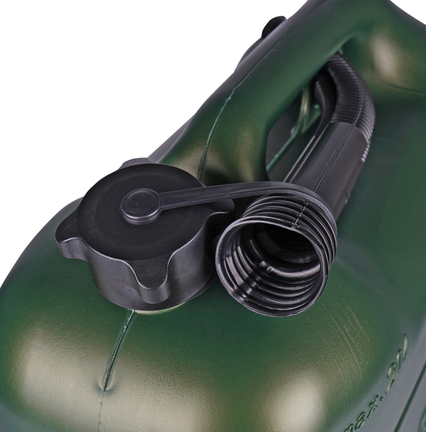 Канистра изготовлена из высококачественного пластика, что гарантирует её долговечность и устойчивость к внешним воздействиям. Она обладает объёмом в 20 литров, что делает её подходящей для большинства автомобилей. Тёмно-зелёный цвет канистры помогает оставлять её менее заметной в окружающей среде, что особенно полезно для хранения вне помещения.