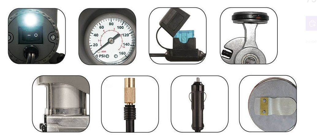Функции автомобильного компрессора включают быструю накачку шин, что особенно важно во время длительных поездок или в случае пробоя колеса. Компрессор оборудован системой автоматического отключения при достижении необходимого давления, что предотвращает перекачку и обеспечивает безопасность использования.