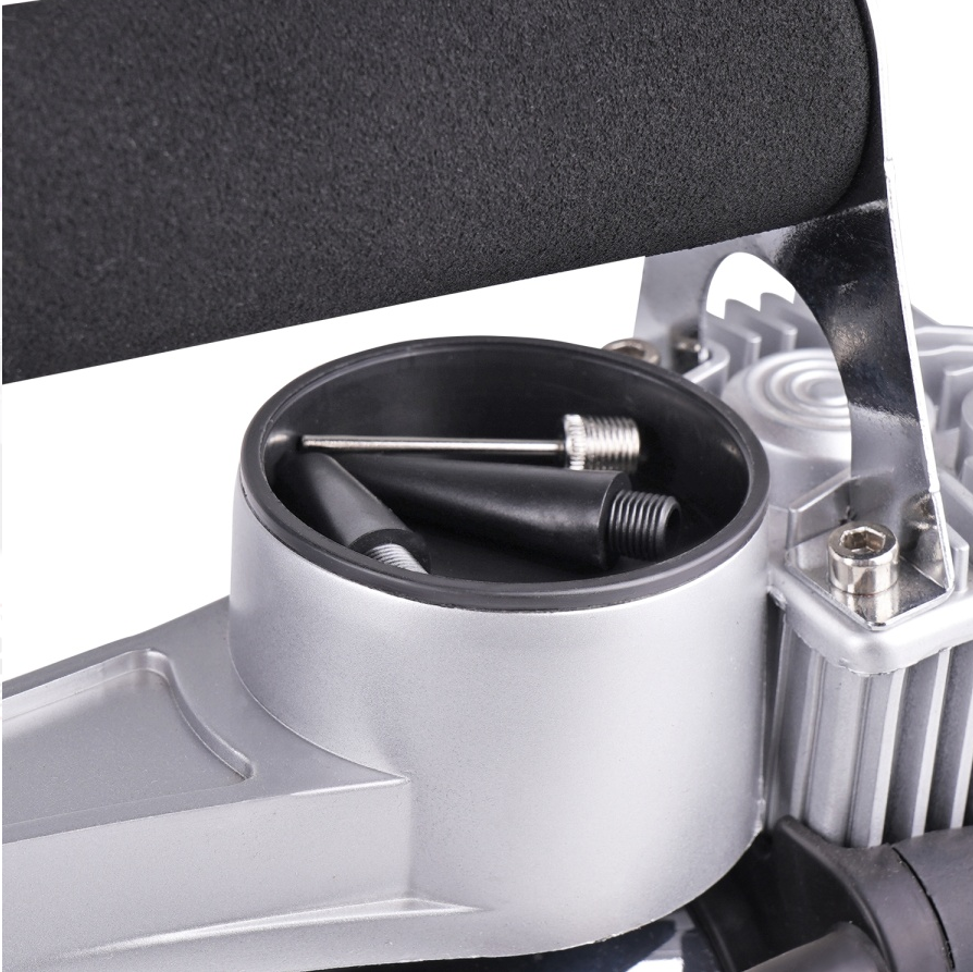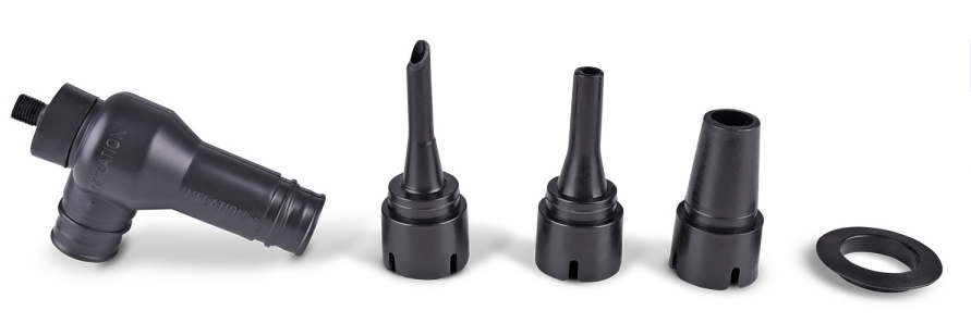В комплекте с компрессором поставляются переходники для лодок, мячей, матрасов, велосипедных шин и другие насадки.