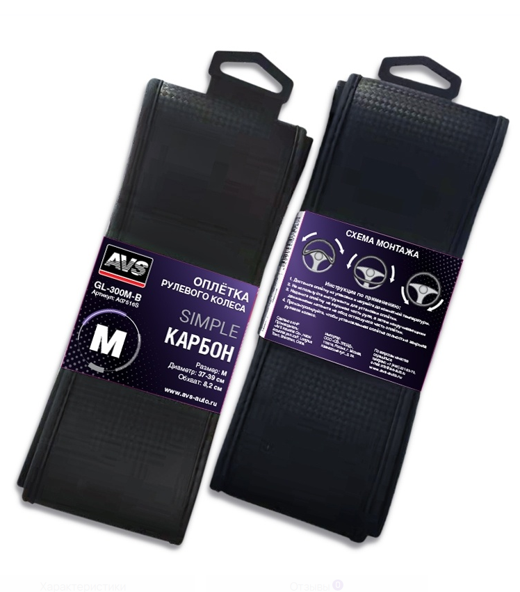 Оплетка на руль (карбон) AVS GL-300M-B (размер M, черный)
