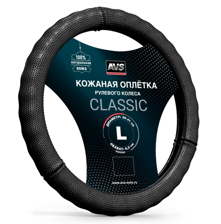 Оплетка на руль (нат. кожа) AVS GL-296L-B (размер L, черный)