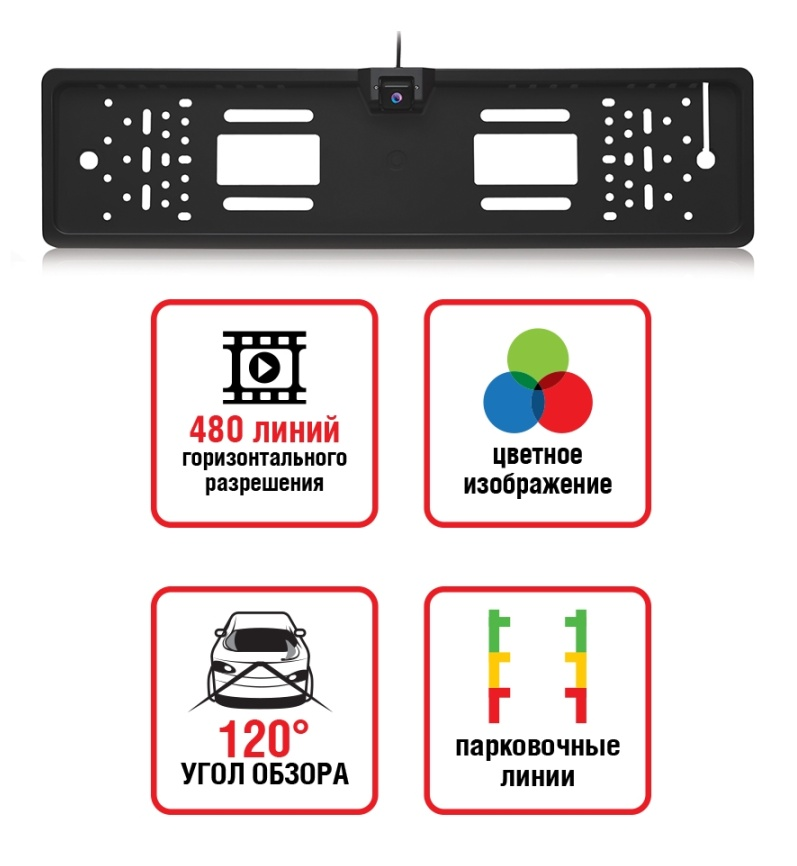 Камера заднего вида в рамке номерного знака обеспечивает широкий угол обзора, что позволяет водителю получить четкое представление о ситуации позади автомобиля. Это помогает избежать столкновений и других неприятных ситуаций при парковке.