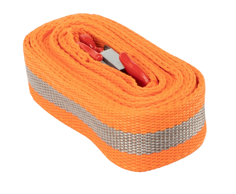 Оранжевый цвет троса делает его заметным на дороге, что повышает безопасность при буксировке.