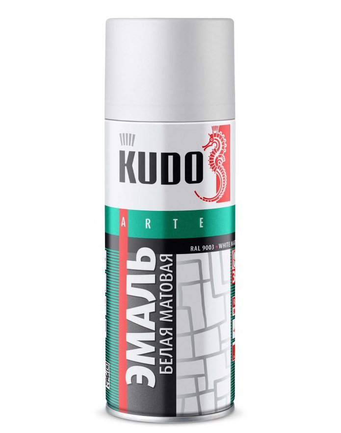 Аэрозольная краска KUDO "Эмаль универсальная высокопрочная", Алкидная, Матовая, 0.52 л, Белая
