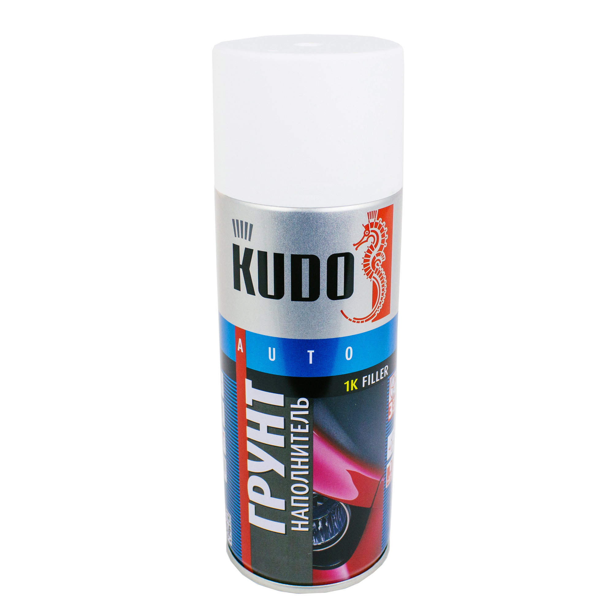 Грунтовка KUDO "1K ГРУНТ-НАПОЛНИТЕЛЬ" быстросохнущий, акриловый, белый, аэрозоль, 520 мл
