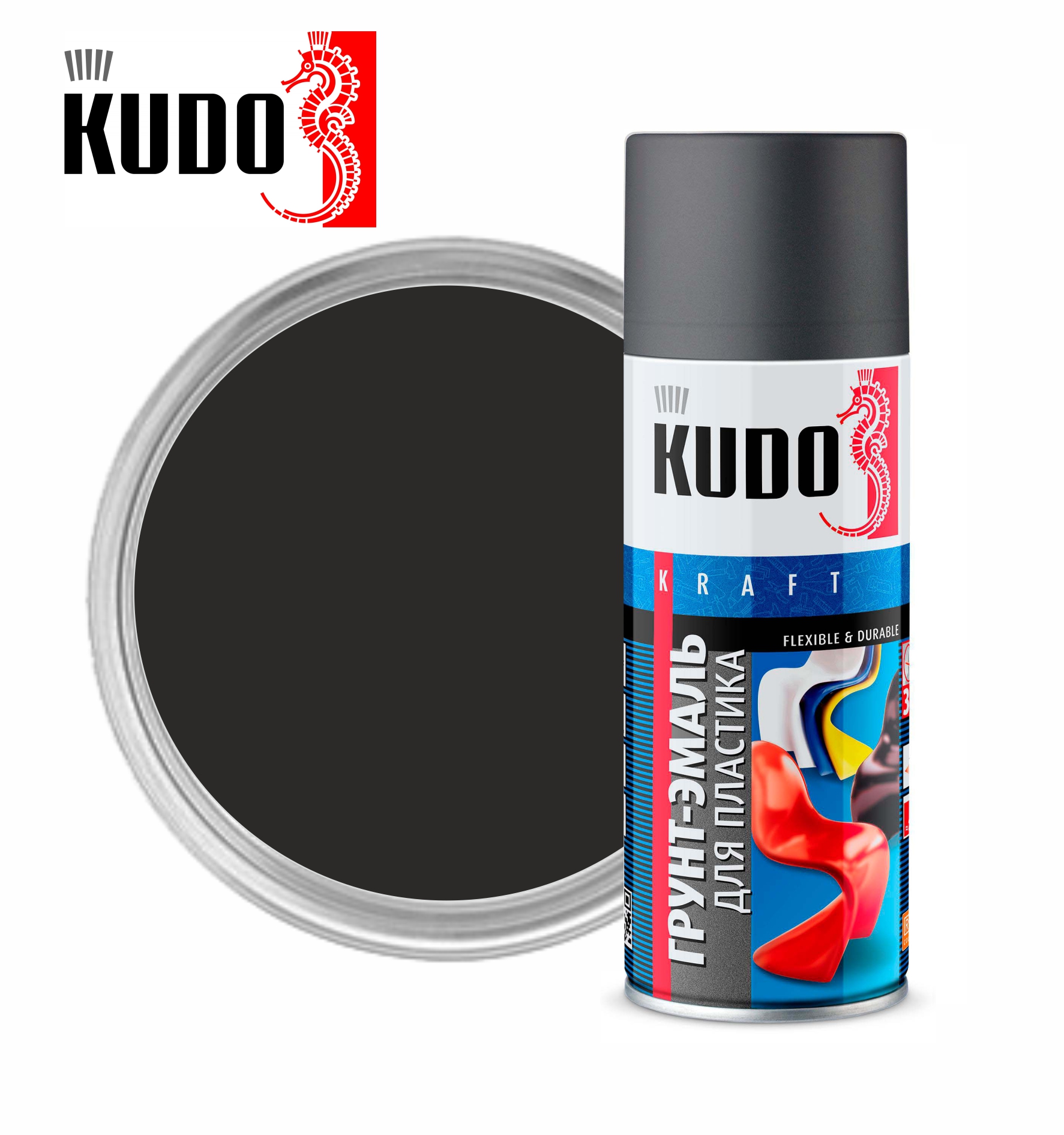 Грунт-эмаль для пластика KUDO, быстросохнущая, акриловая, баллончик 0.52 л, Черная матовая