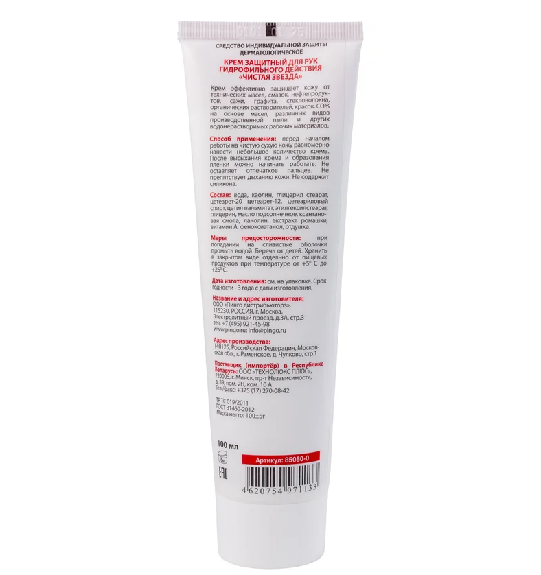 Крем защитный для рук гидрофильного действия марки "Чистая звезда", туба 100мл