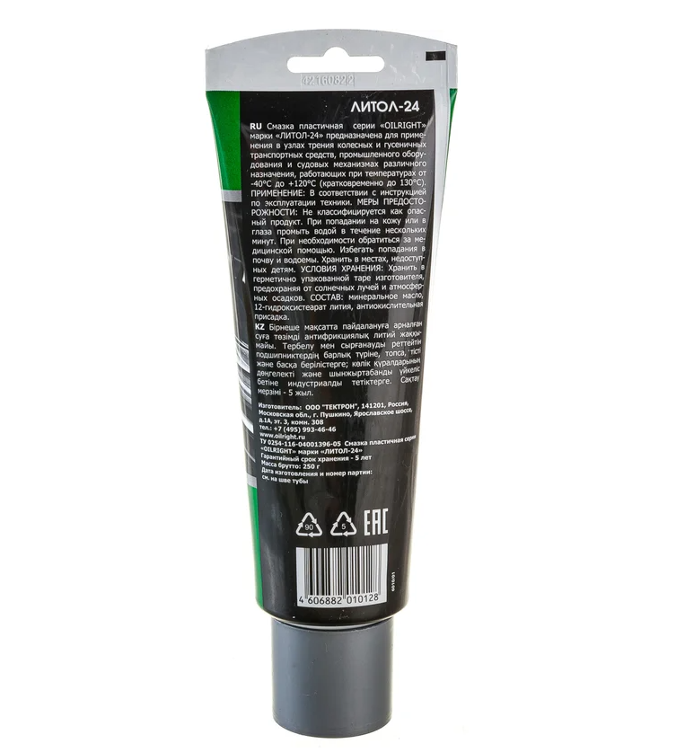Смазка Литол-24 в тубе от OILRIGHT - это высококачественная автомобильная смазка, которая обеспечивает надежную защиту и смазку различных деталей и механизмов.