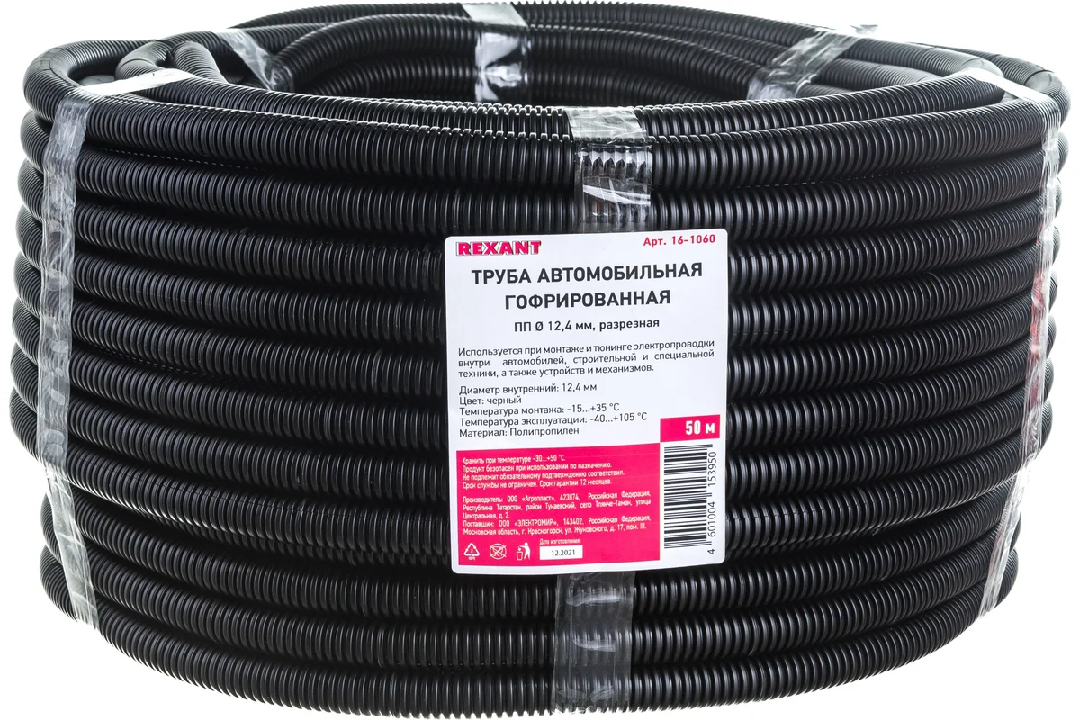 Автомобильная гофрированная труба ПП d 12,4 мм (REXANT)