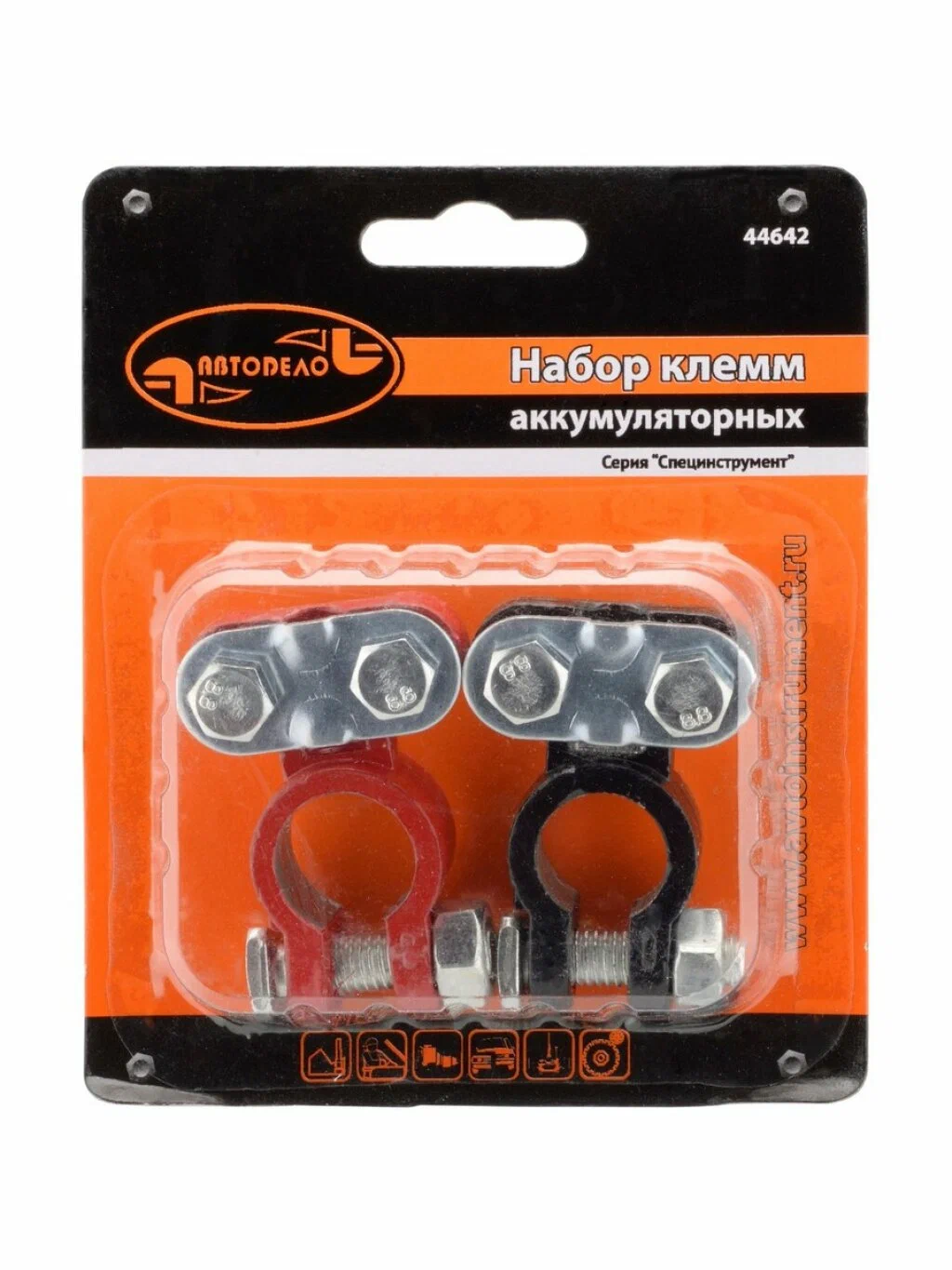Набор аккумуляторных клемм с зажимом автоdело — комплект, предназначенный для надёжного соединения аккумуляторных выводов в системах электрики двигателя.