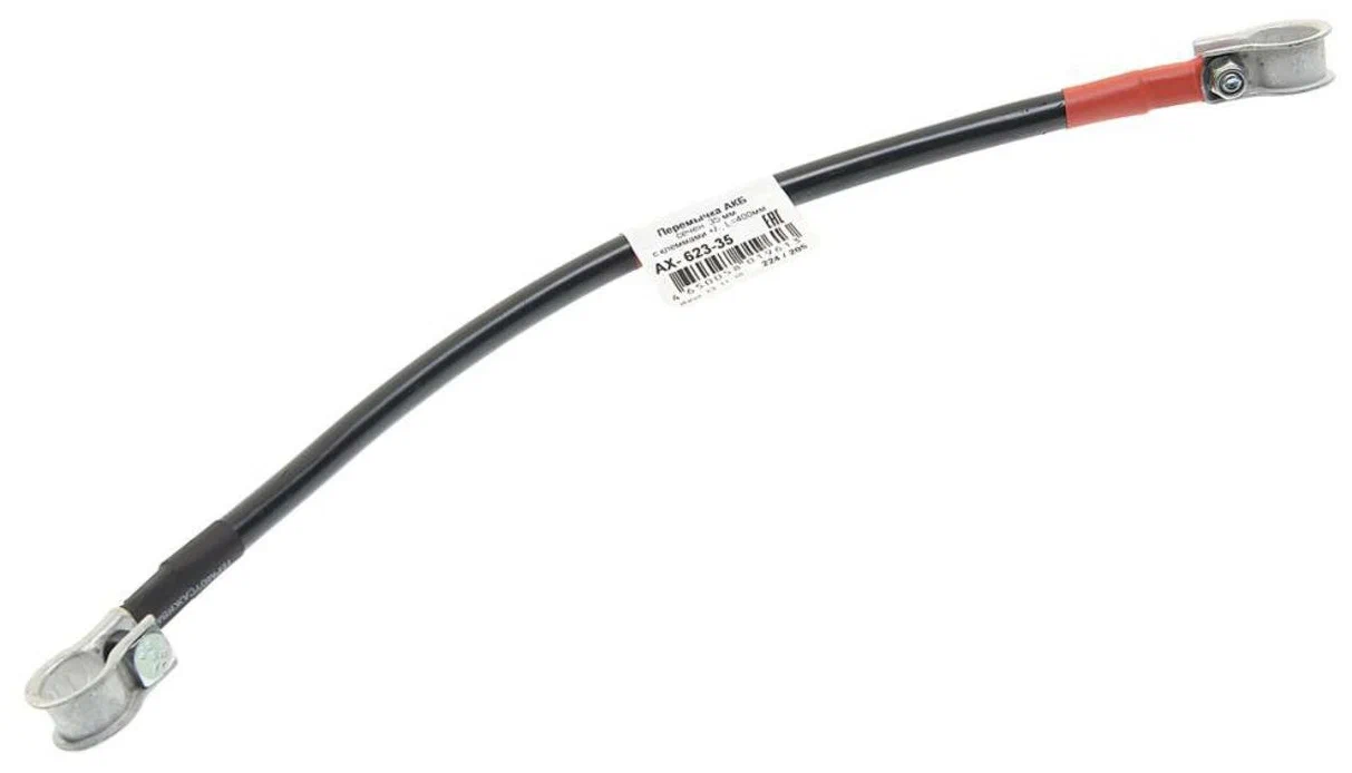 Перемычка с клеммами "+" и "-" аккумуляторной батареи, сечение провода 35 кв.мм. длина 400 м — изделие предназначено для надёжного соединения положительных и отрицательных выводов аккумулятора.