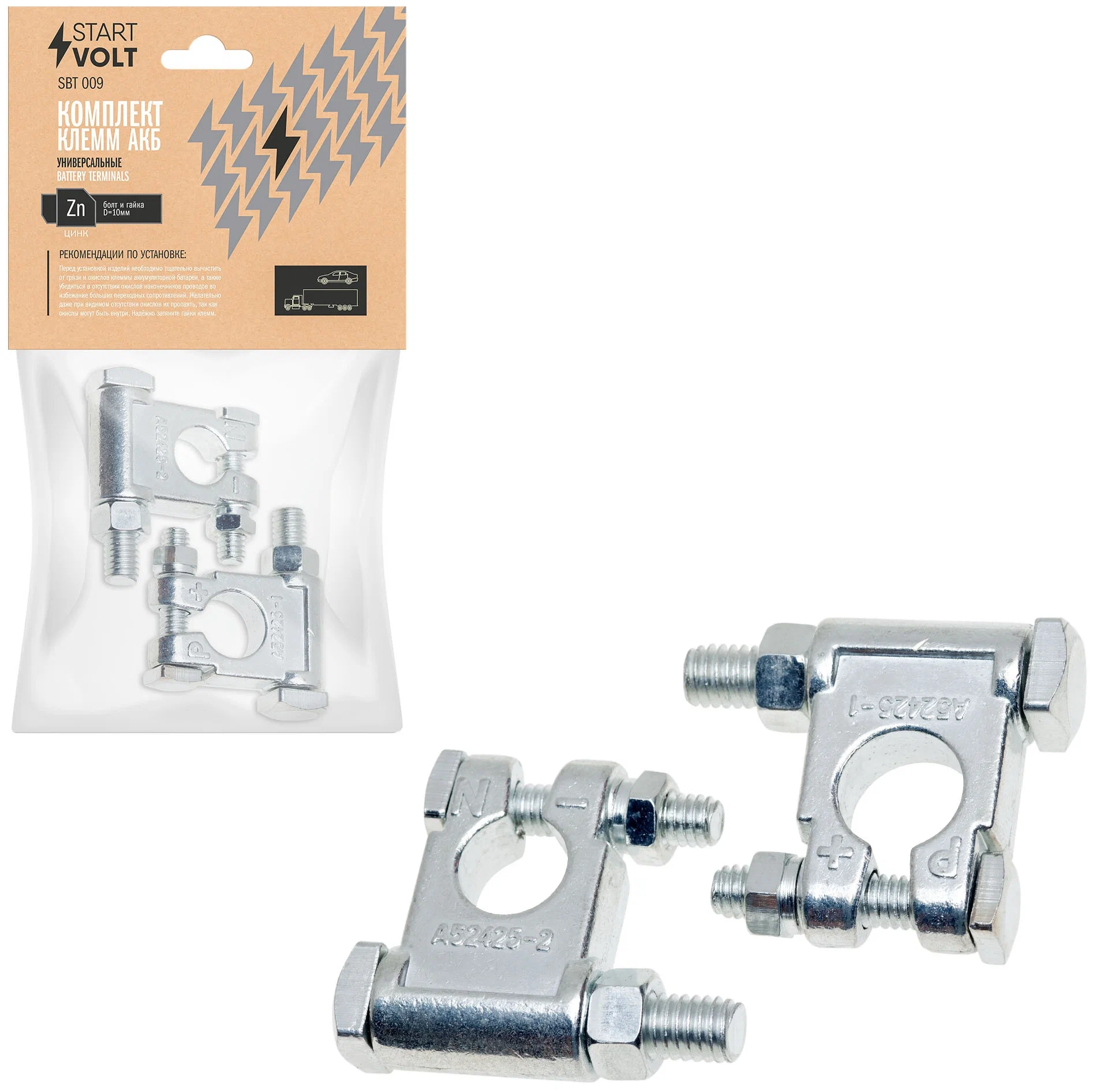 Клеммы акб в комплекте цинк, болт и гайка 10мм startvolt предназначены для надёжного соединения аккумуляторных батарей в системе электрики двигателя.