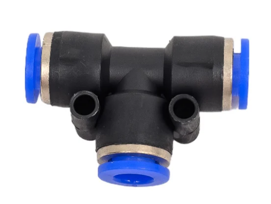 Диаметр фитинга составляет 6 мм, исполнен из прочного пластика, обладающего высокой устойчивостью к износу и коррозии. Т-образная форма обеспечивает надёжную позицию соединения, материал гарантирует длительный срок службы даже при интенсивных нагрузках.