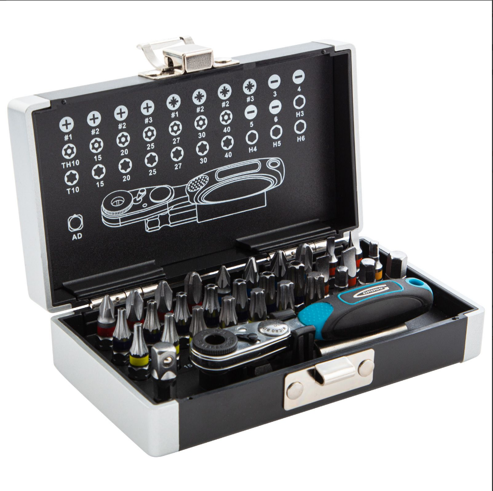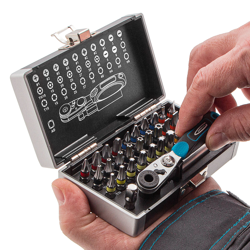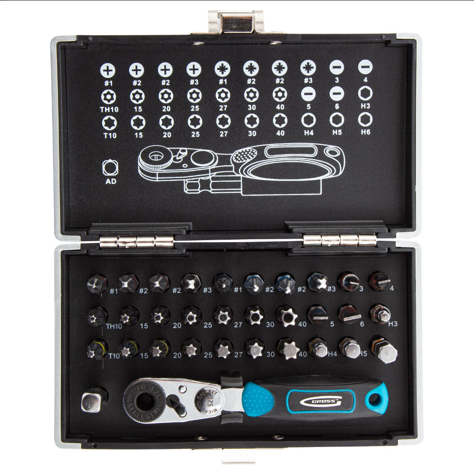 Набор бит, 1/4", магнитный адаптер, сталь S2 пластиковый кейс, 33 предм. Gross