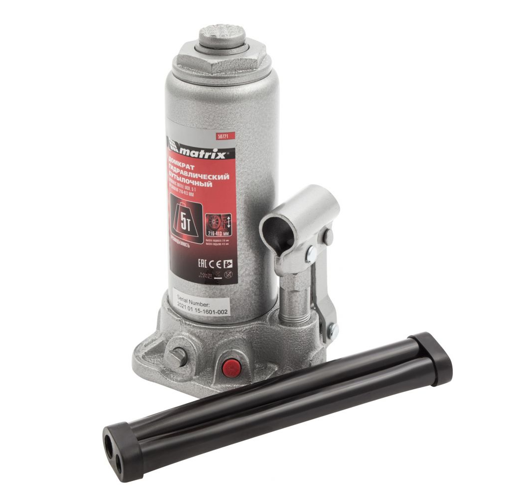 Домкрат гидравлический бутылочный, 5 т, h подъема 216-413 мм Matrix