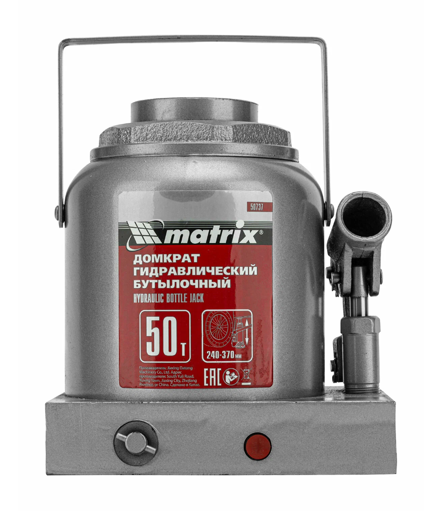 Домкрат гидравлический бутылочный MATRIX 50 т имеет широкий диапазон подъема – от 240 до 370 мм. Это позволяет использовать его для автомобилей различного размера и типа.