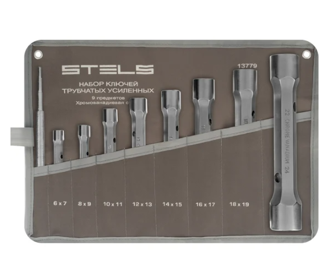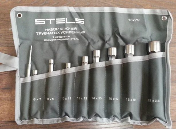 Набор ключей трубчатых торцевых усиленных, 6-24 мм, 9 шт, CrV Stels