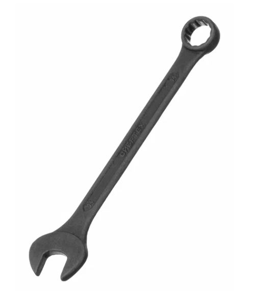Эта модель ключа удобна в использовании благодаря комбинированной конструкции, сочетающей рожковую и накидную части. Это позволяет эффективно работать в труднодоступных местах и использовать один инструмент для различных задач, что существенно упрощает процесс ремонта и сборки.