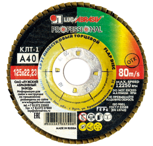 Круг лепестковый торцевой 125х22.23мм А40