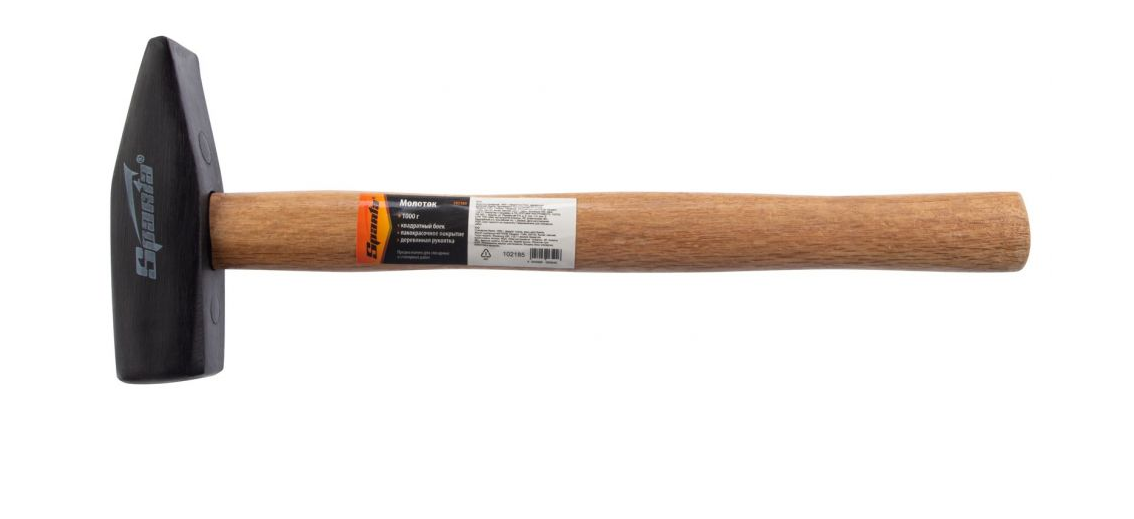 Молоток слесарный, 1000 г, квадратный боек, деревянная рукоятка Sparta