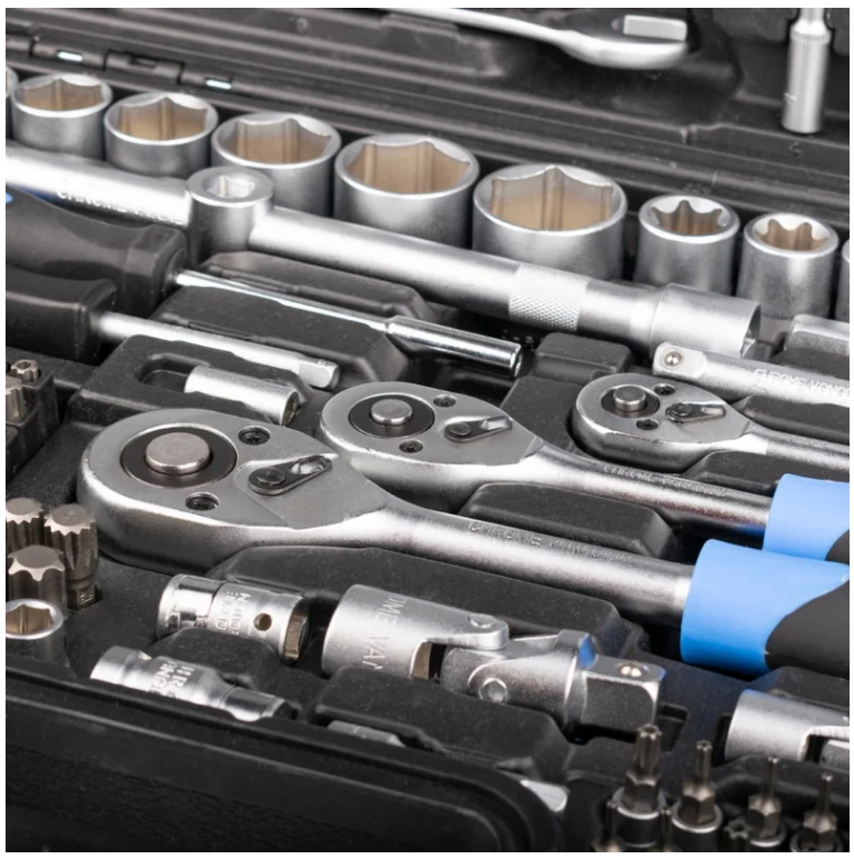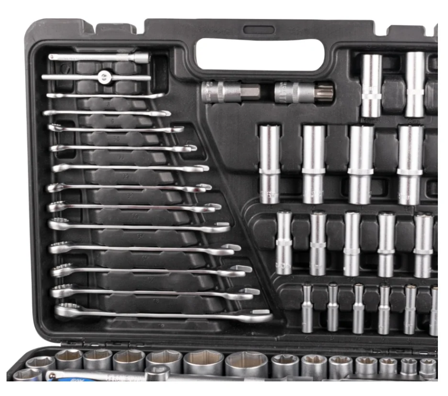 Набор инструментов выполняет множество функций: в комплекте есть рукоятка трещоточная с 45 зубцами, отвертка под биты 1/4" магнитная, торцевые ключи (включая Torx и свечные), биты, торцевые головки и комбинированные гаечные ключи. Эти инструменты позволяют выполнять широкий спектр работ от мелкого ремонта до сложных технических задач с высокой точностью и эффективностью.