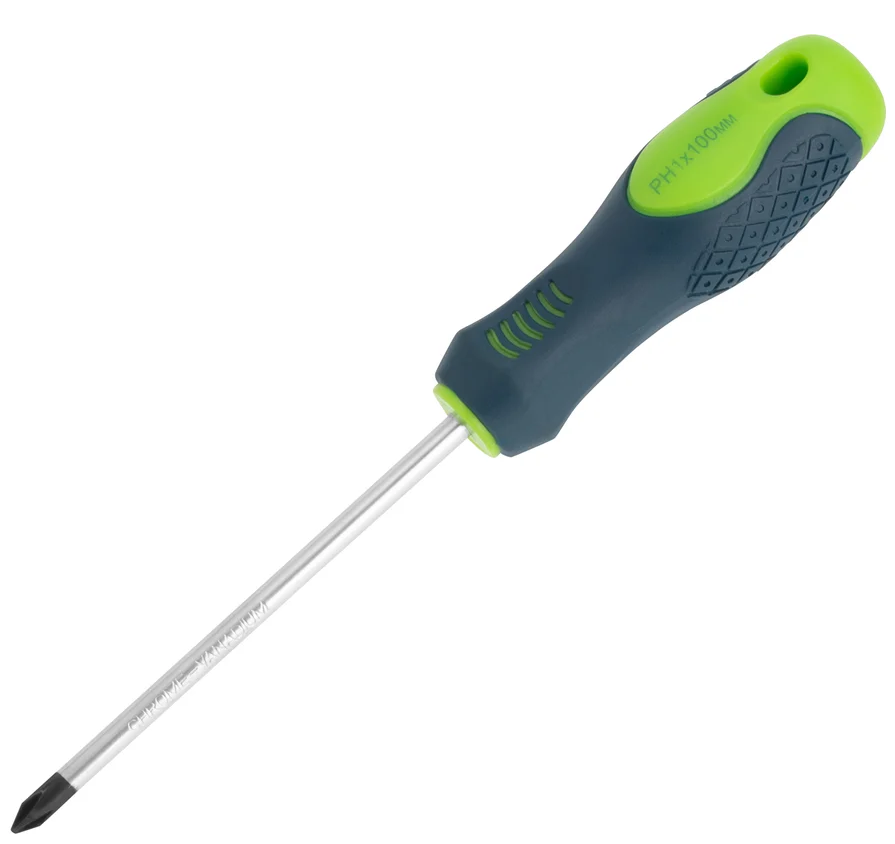 Отвертка Сибртех PH1х100 мм оснащена крестообразным наконечником типа PH1, что позволяет работать с винтами и шурупами с крестообразными шлицами.