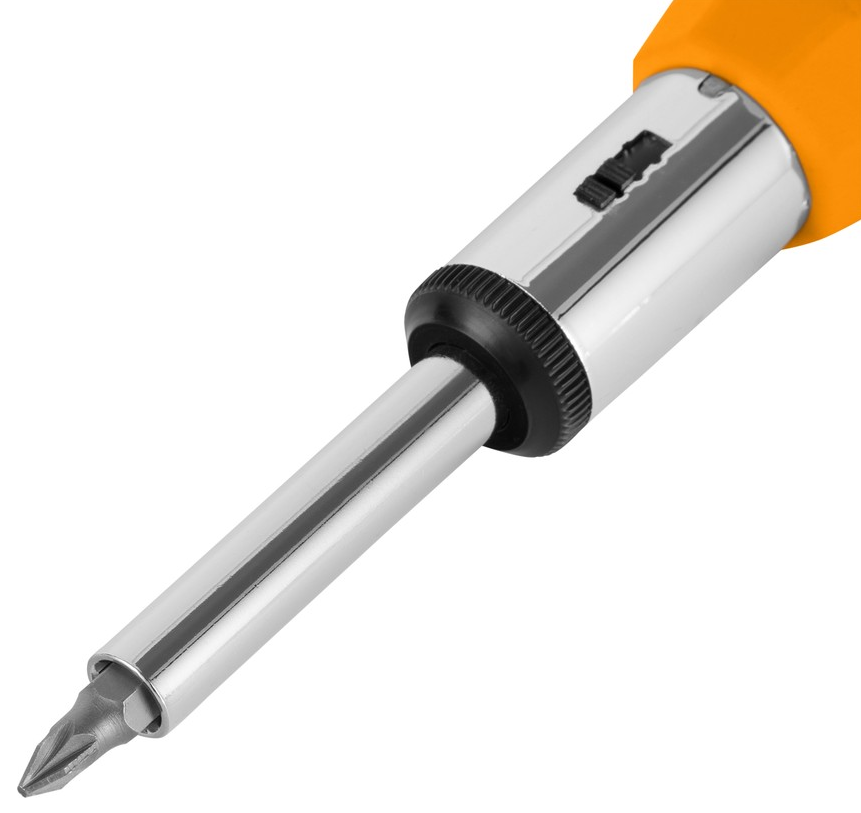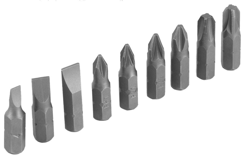 Отвертка-реверс Sparta оснащена 10 битами PH, SL и PZ, что позволяет выполнять широкий спектр работ по монтажу и демонтажу различных видов крепежа.