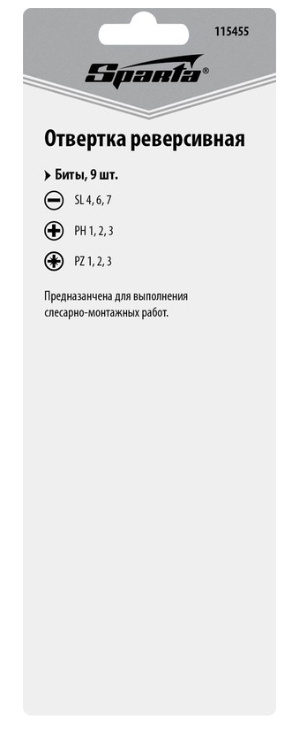 Выбирая отвертку-реверс + биты Sparta, вы получаете надежный и многофункциональный инструмент, который станет незаменимым помощником как для профессионалов, так и для любителей.