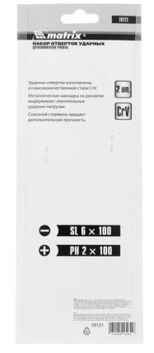 Набор отверток ударных, 2шт., PH + SL, CrV, 2к рукоятка Matrix