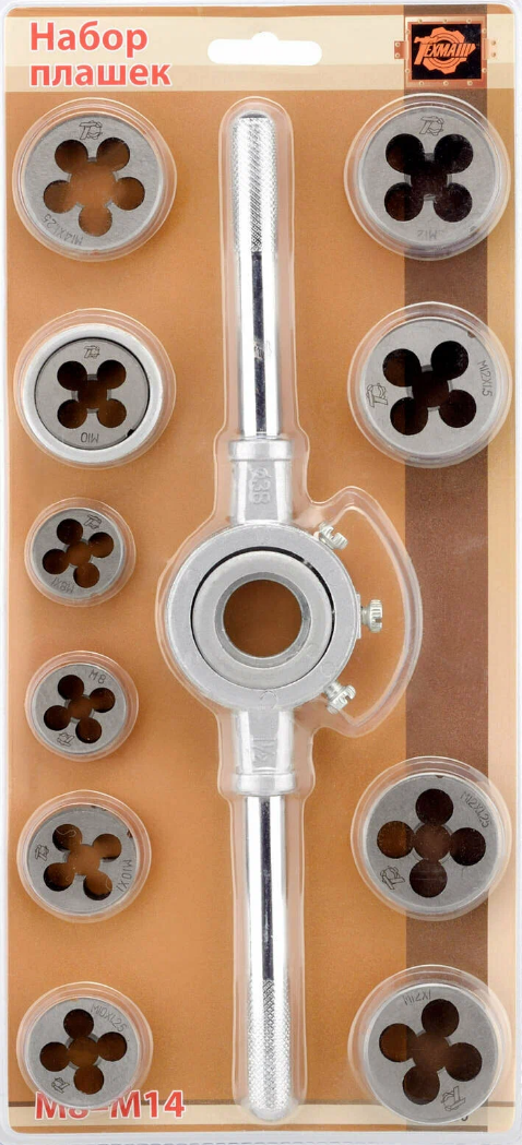 Набор плашек с воротком М8-М14 (10шт/блистер) ТЕХМАШ