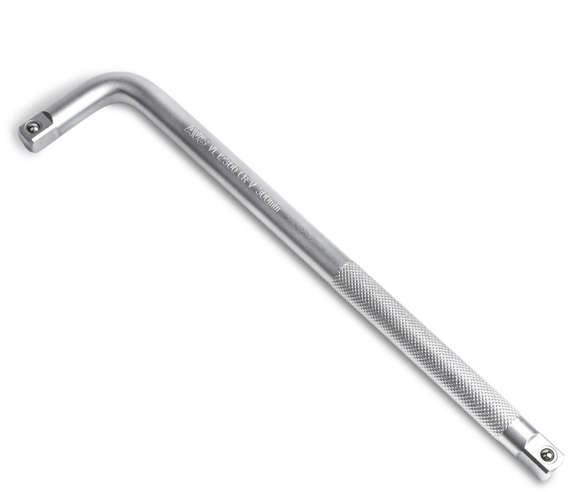 Вороток AVS VL12300 имеет длину 300 мм, что позволяет работать с крепежом в труднодоступных местах. Г-образная форма обеспечивает удобство использования и позволяет работать в ограниченном пространстве.