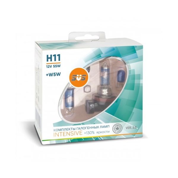 Лампа галогенная 12V H11 55W+W5W Intensive+130% , комплект 2шт. Ver.2.0