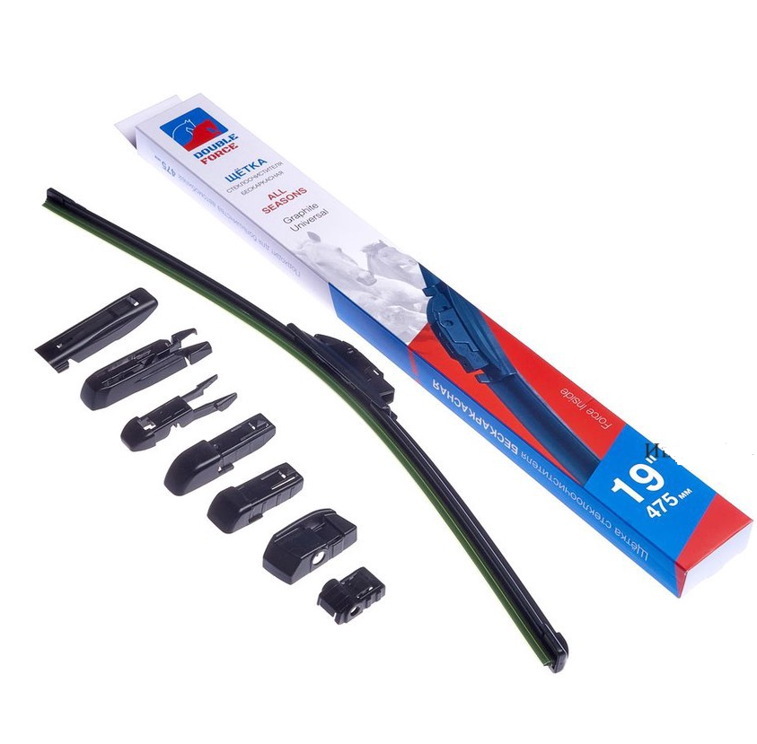 Длина рабочей части составляет 475 мм (19 дюймов). Конструкция бескаркасная, что облегчает установку и снижает уровень шума. Производитель Double Force гарантирует совместимость с большинством стандартных систем стеклоочистителей.