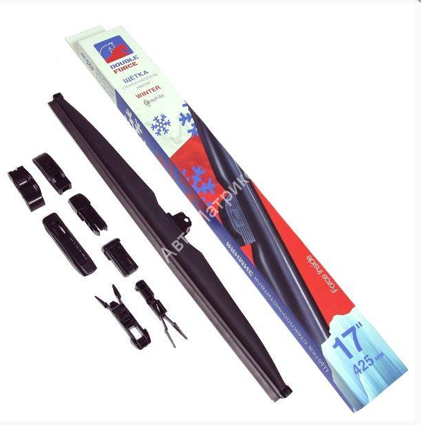 Технические параметры включают оптимальную длину 425 мм (17 ") и совместимость с большинством транспортных средств. Материалы отвечают требованиям зимних условий, обеспечивая устойчивость к низким температурам и воздействию влаги. Бренд Double Force гарантирует качество и долговечность изделия.