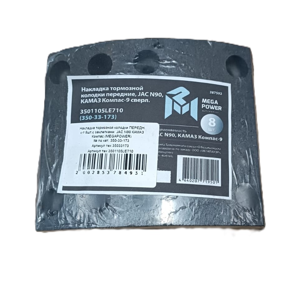 Накладка тормозной колодки передняя, комплект из 8 штук с заклепками JAC N90 KAMAZ Компас от бренда MEGAPOWER предназначена для использования в передней тормозной системе. Бренд MEGAPOWER зарекомендовал себя как производитель высококачественных и надежных автозапчастей, что подтверждено авторитетными отзывами пользователей.