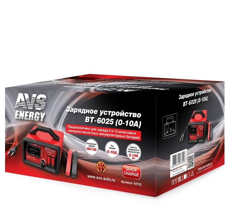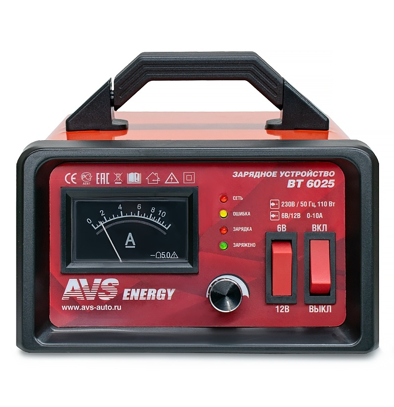 Зарядное устройство для автомобильного аккумулятора AVS BT-6025 (10A) 6/12V